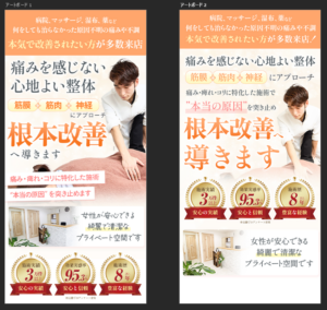 赤ちゃんの写真をやめて、施術者の印象にいい写真に変更。爽やかな印象に。