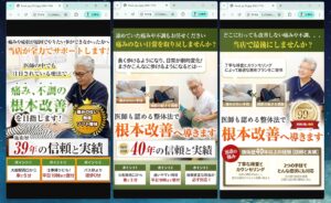 「医師も推奨する本格施術」のゴールドが重い雰囲気を作り、写真と相まって胡散臭く見える。