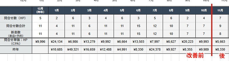 ファーストビューの調整後、初月で直近2年間でTOP2、年内TOPのお問合せ単価に改善!